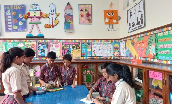 The School’s Primary wing has a Math Lab aims to sharpen the calculative skills of our students by inculcating in them the pursuit to understand various dimensions of Mathematics. Various models, charts etc on Abacus, Polynomials, etc have been placed here, for visual understanding of the concepts. The Math Lab stirs potentials to exude confidence among the students.